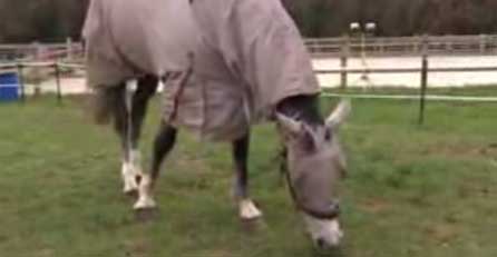 So etwas gibt es wohl nur in England: Weil ihr Pferd unter einer seltenen Grass-Allergie leidet, lässt die Besitzerin es nur eingehüllt mit einer High-Tech-Pferdedecke und einer Augenmaske auf die Weide. Die Besitzerin des Vollblüters will die Stute "Pandora" nicht im Stall wegsperren und verpackt das Tier einfach von Kopf bis Huf.