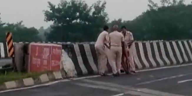 Nach einem Verkehrsunfall in Indien haben Polizisten die Leiche eines Unfallopfers einfach in einen Kanal geworfen. Ein Video des Vorfalls kursiert in Online-Netzwerken.