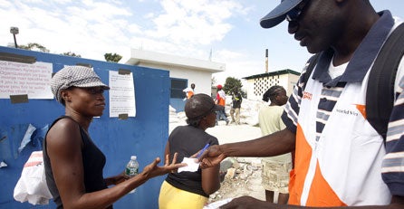 Bei der Versorgung der Erdbebenopfer in Haiti haben die Vereinten Nationen mehr Probleme als erwartet. "Es gibt täglich neue Schwierigkeiten. Vor allem die Verteilung der Lebensmittel macht bei einer solch unglaublichen Katastrophe Probleme", sagte UN-Missionschef Edmond Mulet am Montag per Videokonferenz bei den Vereinten Nationen in New York. "Schwierigkeiten macht vor allem, dass die Leute umherziehen. Dadurch ist es sehr schwer zu erfassen, wo genau Hilfe gebraucht wird." Gerade am Vortag sei aber an 100.000 Menschen Reis ausgegeben worden. "Das sind 100.000 Familien. Das bedeutet, dass diese für mindestens eine Woche versorgt sind."