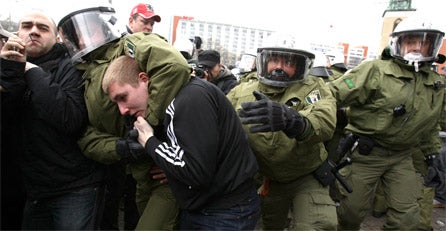 Frankfurt laut Polizeiangaben gegen die Verursacher der Wirtschaftskrise auf