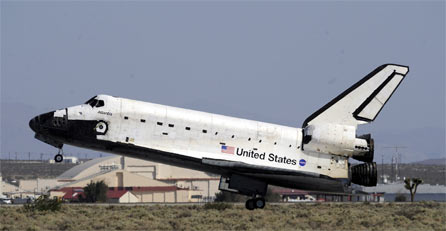 Heimkehr mit Hürden: Weil es über Florida regnete und stürmte, ist die US-Raumfähre "Atlantis" am Sonntag erst mit zweitägiger Verspätung zur Erde zurückgekehrt. Das Shuttle mit sieben Astronauten an Bord setzte um 17.39 Uhr MESZ auf dem Luftwaffenstützpunkt Edwards in Kalifornien auf. Auf ihrer rund 13-tägigen Mission hatte die Crew das legendäre Weltraumteleskop "Hubble" repariert und aufgerüstet.