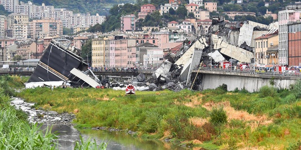 Während eines schweren Unwetters war am Dienstagmittag der Polcevera-Viadukt, der auch Morandi-Brücke genannt wird, in mehr als 40 Metern Höhe auf einem etwa 100 Meter langen Stück eingestürzt. Die Brücke ist Teil der Autobahn 10, die auch als Urlaubsverbindung "Autostrada dei Fiori" bekannt und eine wichtige Verbindungsstraße nach Südfrankreich, in den Piemont und die Lombardei ist.