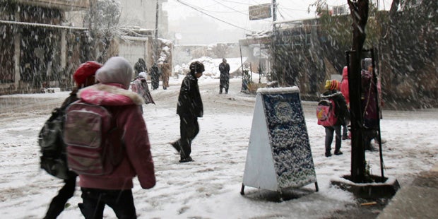"Wir befürchten, dass das schlimmste noch kommt", sagte Redmond. Der Wintersturm "Zina" fegt seit Dienstag mit Regen und Schnee über den Libanon. In der Hauptstadt Beirut musste zeitweilig der Flugverkehr ausgesetzt werden, wie die Zeitung "Daily Star" meldete. Schnee blockiere viele Straßen in höher gelegenen Regionen. In der Bekaa-Ebene an der Grenze zu Syrien liegen rund 35 Zentimeter Schnee.
