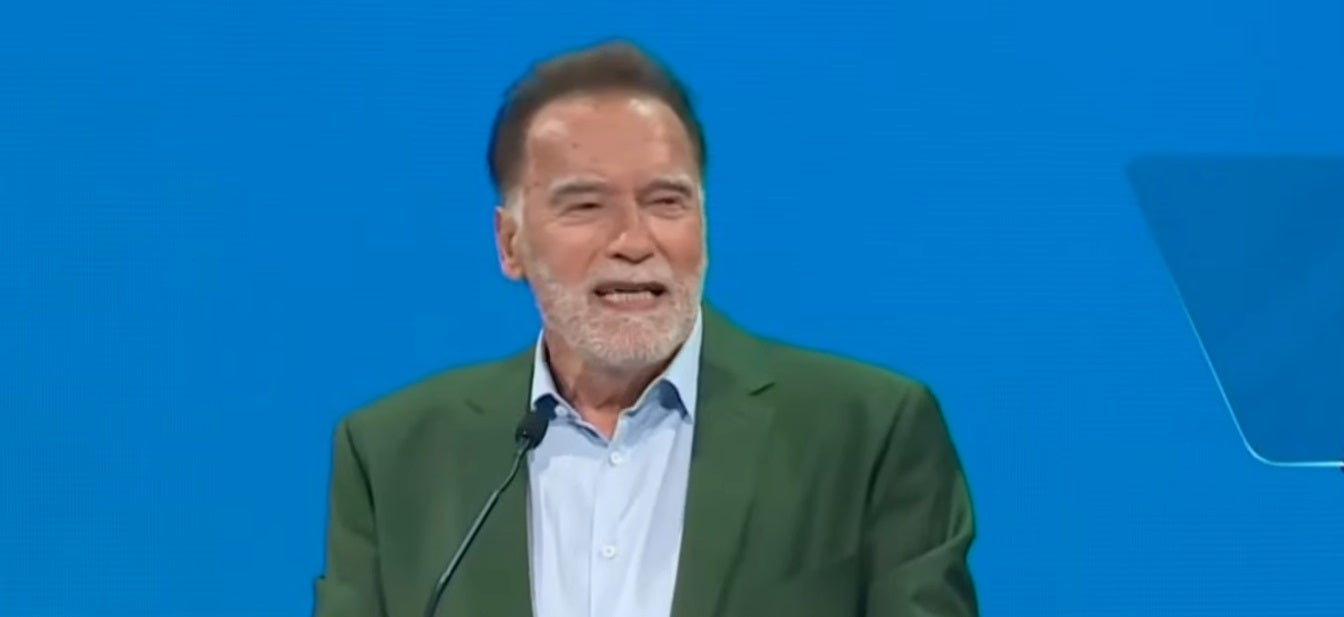 "Zum ersten Thema: Es geht nicht um Parteipolitik, es geht um die Menschen und die Gemeinsamkeit", ruft Schwarzenegger zum gemeinsamen Klimaschutz auf.