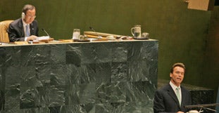 An der Konferenz in New York nehmen mehr als 70 Regierungschefs aus aller Welt teil. Ban Ki-Moon traf auch Schwarzenegger.