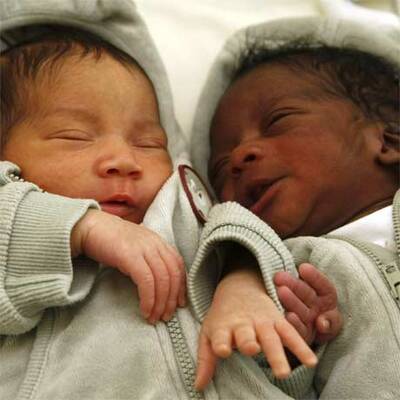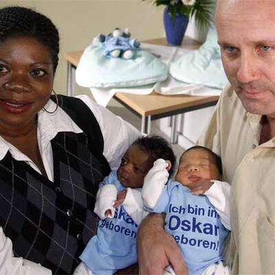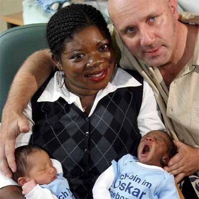 Laune der Natur: In Berlin kam ein Zwillingspärchen mit unterschiedlicher Hautfarbe zur Welt. Der Vater stammt aus Potsdam, die Mutter aus Ghana.
