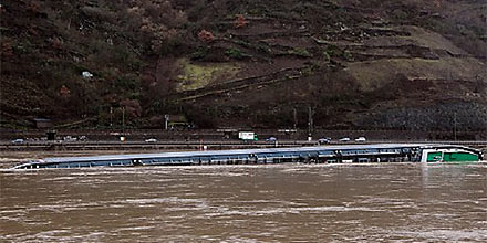 Ein Tankschiff mit gefährlicher Schwefelsäure an Bord ist auf dem Rhein nahe des Loreleyfelsens gekentert. Helfer suchten am Donnerstag bei St. Goarshausen fieberhaft nach zwei vermissten Besatzungsmitgliedern, die Hoffnung auf eine Rettung schwanden jedoch stündlich. Zwei weitere Bootsmänner konnten am frühen Morgen kurz nach der Havarie verletzt an Land gebracht werden.
