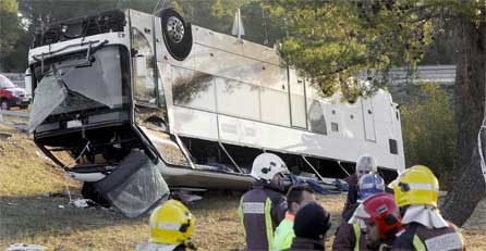 Bei einem schweren Busunglück in Spanien ist eine Jugendliche aus den Niederlanden ums Leben gekommen, 24 weitere Schüler wurden zum Teil schwer verletzt. Der Schulbus verunglückte Montag früh auf einer Autobahnabfahrt in der Nähe von Girona im Nordosten des Landes. An Bord waren 59 Schüler im Alter zwischen 15 und 16 Jahren sowie der Fahrer. Mehrere Insassen waren zeitweise in dem auf die Seite gekippten Fahrzeug eingeschlossen und mussten von der Feuerwehr befreit werden. Die Unfallursache war zunächst unklar.