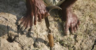 des Knies mit einer Sichel abgehackt. Sie ließen ihn zum Sterben zurück,