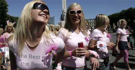 Hunderte Blondinen sind am Sonntag im Rahmen mehrerer Events der "Lettischen Blondinen-Gesellschaft" durch Riga marschiert. Die meisten Teilnehmerinnen seien in weiß und pink gekleidet gewesen, viele hätten ihre Schoßhündchen mit sich getragen, berichtete die lettische Nachrichtenagentur LETA. Einer Sprecherin der Organisatoren zufolge sollte der Event den Menschen in Zeiten finanzieller Probleme eine positivere Perspektive geben.