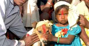 Ein siebenjähriges indisches Mädchen hat einen Hund geheiratet, um ein schlechtes Omen abzuwenden. Die kleine Pushpa hat einen verwachsenen Zahn, was die Stammesältesten des Dorfes im ostindischen Bundesstaat Jharkhand als böses Vorzeichen für die Familie werteten. Sie empfahlen den Eltern die Hochzeit mit einem Hund, um das Schicksal gnädig zu stimmen. An dem von Trommelklang begleiteten Ritual mit dem herrenlosen Streuner nahmen am Dienstag mehr als hundert Gäste teil.