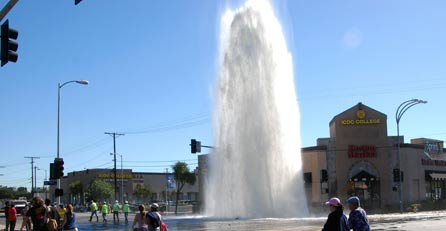 Die Menschen auf dem Van Nuys Boulevard in Los Angeles staunten am frühen Montagmorgen nicht schlecht: Eine Wasserfontäne schoss meterhoch in den Himmel. Dieses spektakuläre Schauspiel wurde durch einen Wasserrohrbruch ausgelöst. Wie die Stadt mitteilte, drangen mehrere tausend Liter Wasser ins Freie.