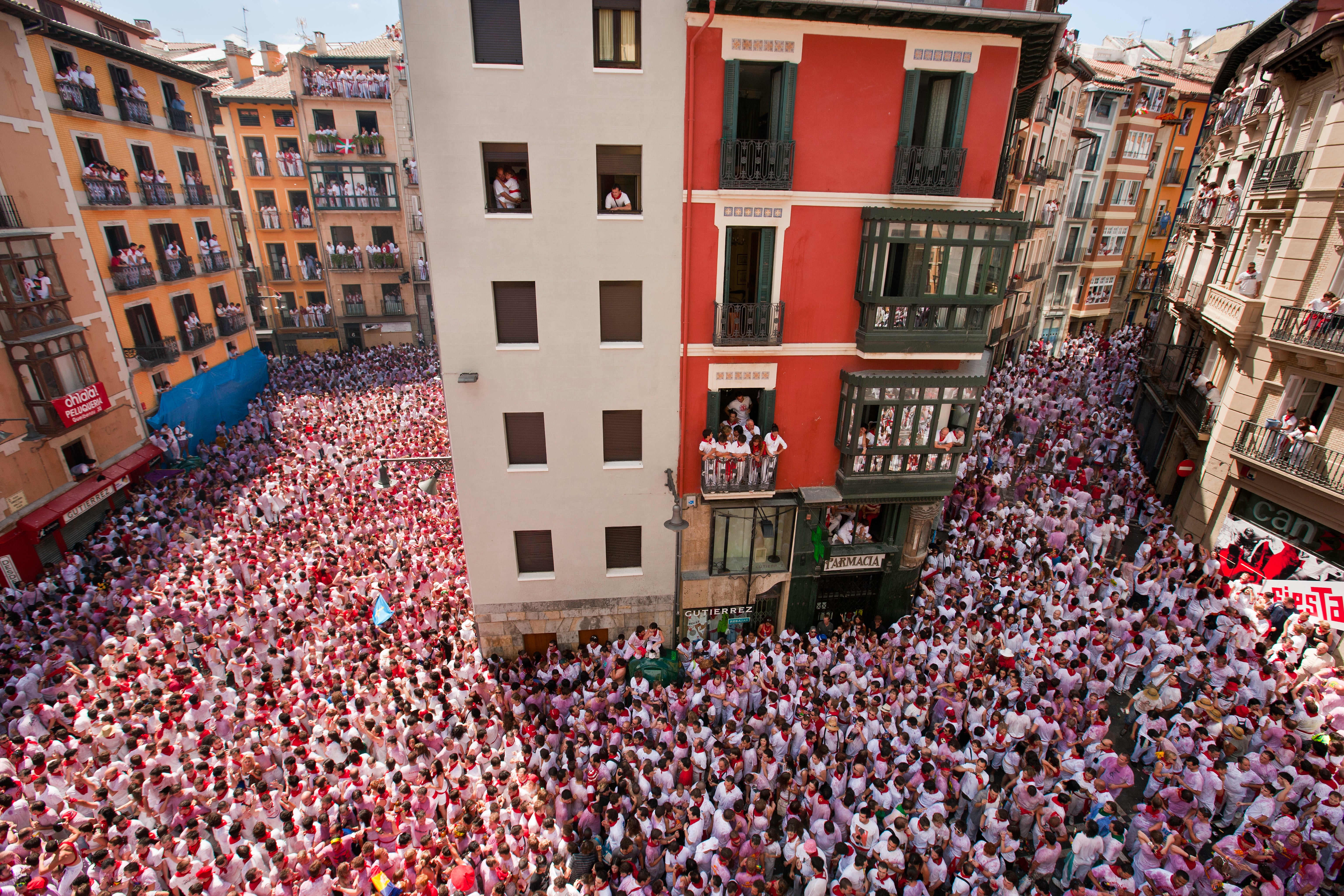 Das Fest zu Ehren des Stadtheiligen San Fermín hatte am Vortag begonnen und endet kommenden Sonntag. Täglich werden für die Stierkämpfe am Abend schon in der Früh ab 08.00 Uhr sechs zum Teil über 600 Kilogramm schwere Kampfbullen und mehrere zahme Leitochsen durch die engen Gassen der Altstadt bis in die Arena gejagt. Bei den Mutproben der vorwiegend jungen Männer über die 875 Meter lange Strecke werden jedes Jahr Dutzende Läufer verletzt. Seit 1924 gab es 16 Todesopfer, das letzte 2009.