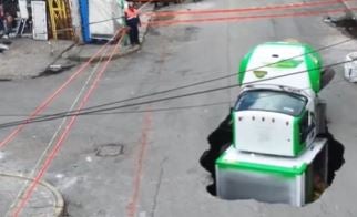 Ein ungewöhnlicher Unfall hat am Sonntag für Aufsehen in Mexiko-Stadt gesorgt: Ein Lastwagen, beladen mit Hunderten Flaschen Softdrinks, ist in ein plötzlich aufgebrochenes Riesen-Straßenloch gestürzt.