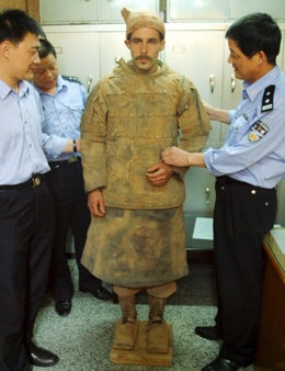 Mit einer Verkleidung als Jahrtausende alter Terrakotta-Krieger hat ein deutscher Kunststudent in China die Polizei gefoppt.