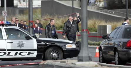 Bei einer Schießerei in einem Gericht in Las Vegas im US-Bundesstaat Nevada sind am Montag zwei Menschen ums Leben gekommen. Nach Angaben der US-Bundespolizei FBI hatte der in Schwarz gekleidete Mann das Gerichtsgebäude am Morgen betreten, noch vor den Sicherheitskontrollen eine Waffe gezogen und wild um sich geschossen. Er tötete demnach einen 65-jährigen Sicherheitsbeamten und verletzte einen 48-jährigen Polizisten, bevor er auf der Flucht selbst erschossen wurde.