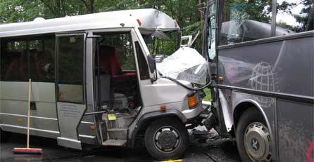 Die beiden Busse stießen in einer Kurve frontal zusammen. Der Lenker eines der Fahrzeuge starb, zehn Schüler wurden verletzt.