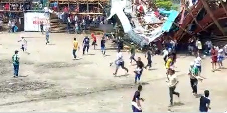 Auf Videos, die in sozialen Medien verbreitet wurden, war zu sehen, wie am Sonntag auf einer Seite der Arena der Stadt El Espinal, gut 150 Kilometer südwestlich der Hauptstadt Bogotá, die mit Menschen gefüllten Holztribünen einstürzten. Die Ursache war zunächst unklar.