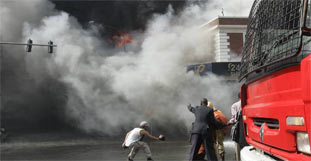 Der LKW hatte Öl geladen. Die Menschen wollten das Öl aus dem verunglückten Laster schöpfen. Vermutlich hat eine Zigarette dann den brand ausgelöst.