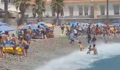 Gegen 14 Uhr näherte sich ein vollbesetztes Schlauchboot mit hoher Geschwindigkeit der Küste. Auf Videoaufnahmen, die im Netz kursieren, ist zu sehen, wie die überwiegend jungen Männer aus dem Boot ins Wasser springen und sich in alle Richtungen verteilen – teils flüchtend, teils versuchend, sich unauffällig unter die Menge zu mischen.