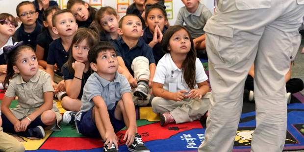 Traurige Bilder: ein "Tac*One-Instructor" bereitet Kindergartenkinder für den Ernstfall eines Amoklaufs vor.