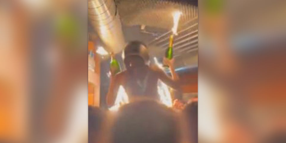 Auf dem Clip ist die verstorbene Kellnerin Cyane Panine zu sehen. Die 24-Jährige saß auf den Schultern eines Kollegen und trug zwei Champagnerflaschen mit brennenden Sprühfontänen durch das Lokal. Während die Gäste ausgelassen feierten, entzündeten die Funken der Fontänen die leicht brennbare Decke der Bar. Da die Kellnerin während der Show einen Helm trug, war ihr Sichtfeld laut "Blick" stark eingeschränkt.