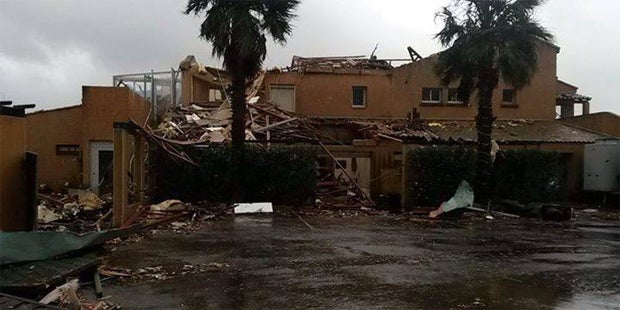 Im südwestfranzösischen Serignan richtete ein kleiner Tornado schwere Verwüstungen an, er entwurzelte Bäume, riss Autos mit und verwüstete Campingplätze. Ein Paar, das nach dem Durchzug des Tornados unter den Trümmern seines Hauses begraben wurde, konnte wohlbehalten geborgen werden.