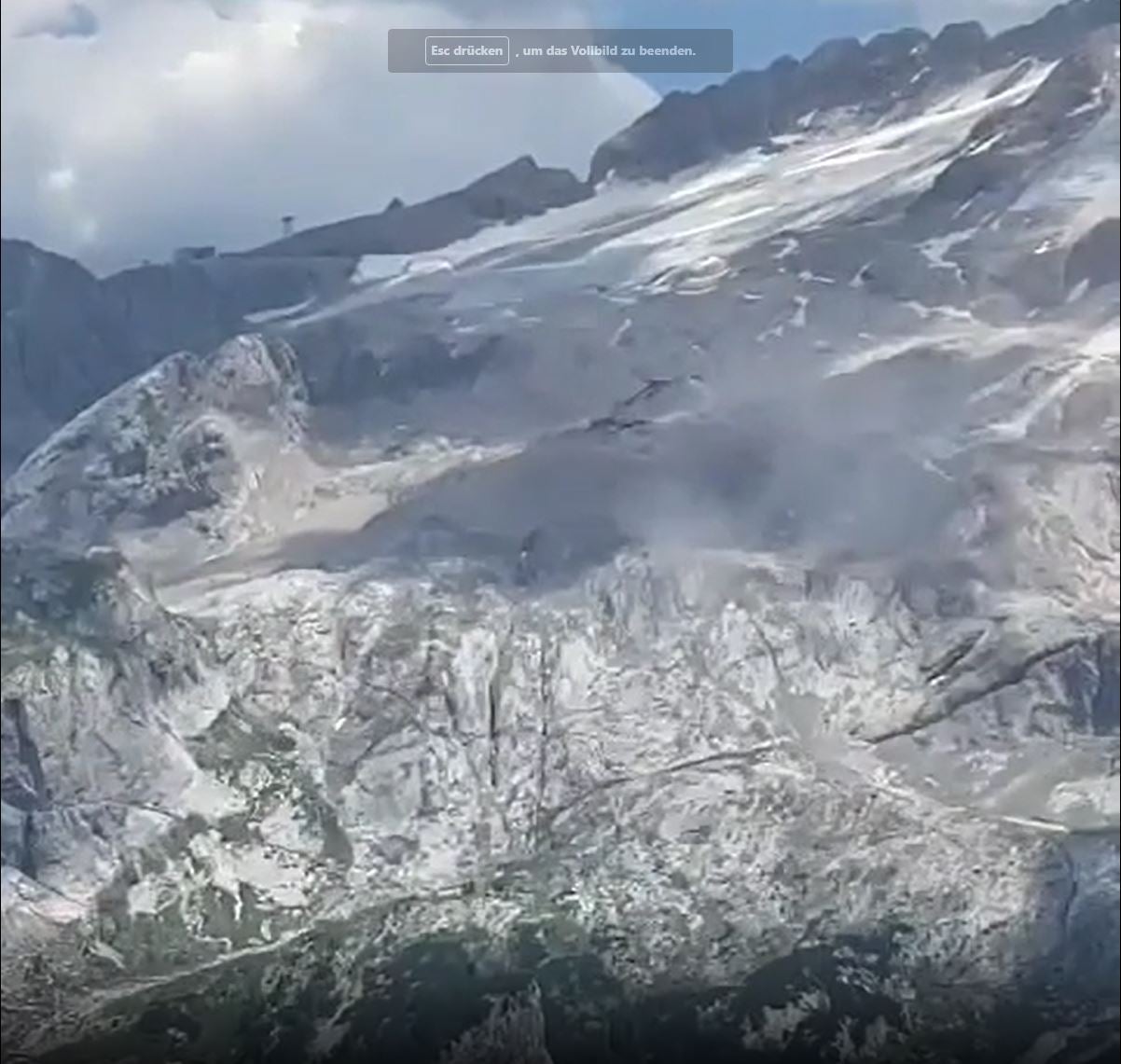 The footage of the large ice avalanche in Marmolada today in close proximity.