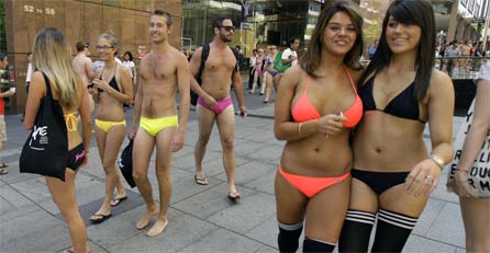 Am 12. November 2009 tat sich in Sydney "Historisches". Hunderte Frauen und Männer säumten in Bikinis und Badehosen die Straßen der Millionen-Metropole, um an der weltgrößten Bikini- bzw. Badehosenparade teilzunehmen. Einzige Bedingung: Die Badekleidung musste wie Unterwäsche geschnitten sein.