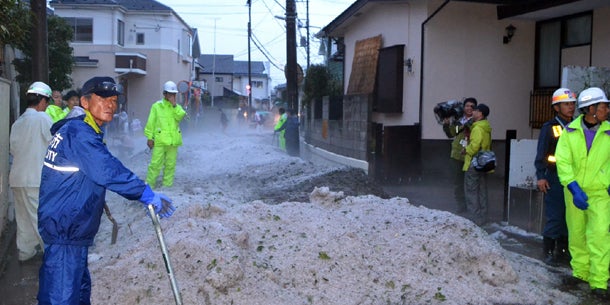 Knietief standen die Bewohner der japanischen Hauptstadt in den Hagelkörnern.