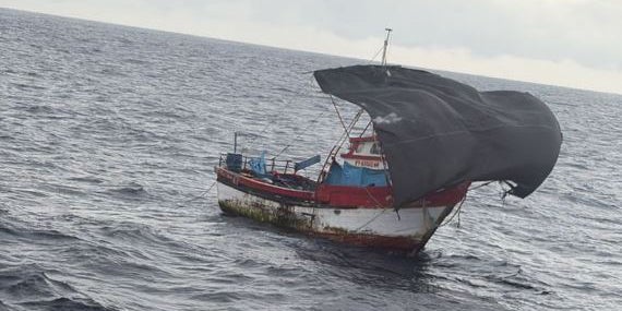 Ein Thunfischkutter hatte am Mittwoch die Schiffbrüchigen gefunden, doch ihr beschädigtes Boot hielt dem Schleppversuch nicht stand und wurde vor Ort verankert. Die Rettung der Männer im Alter zwischen 31 und 52 Jahren übernahm daher schließlich ein Küstenwachboot.