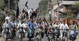 Im indischen Teil Kaschmirs haben am Montag zehntausende Muslime für das Recht auf Selbstbestimmung demonstriert. Trotz offizieller Warnungen der indischen Behörden versammelten sich die Demonstranten in der Sommerhauptstadt Srinagar und zogen vor die dortige UN-Vertretung.