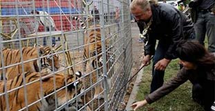 Dressurakt der gefährlichen Art: Als Schausteller und Zirkusdirektor Jaromir Joo im tschechischen Brno (Brünn) seine vier sibirischen Tiger in der Manege vorführte, fiel plötzlich für zwei Minuten das Licht aus. "Ich dachte, ich komme nicht mehr lebendig aus dem Käfig", sagte Joo der Tageszeitung "Pravo".