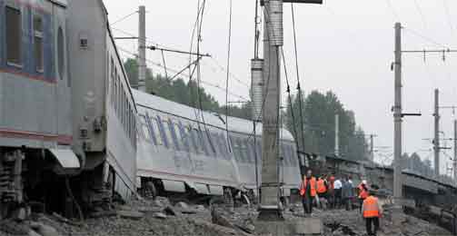 Fahrgäste und 20 Bahnmitarbeiter in dem Zug befunden. Der Lokomotivführer