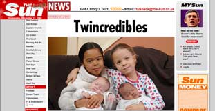 Ein Elternpaar aus Südengland hat zum zweiten Mal Zwillinge unterschiedlicher Hautfarbe bekommen. Wie die britische "Sun" berichtete bekamen der dunkelhäutige Mann (33) und seine weiße Frau (27) bereits vor sieben Jahren bei einer Zwillingsgeburt eine hellhäutige und eine dunkle Tochter. Jetzt ist ihnen dieses Wunder der Natur erneut widerfahren.