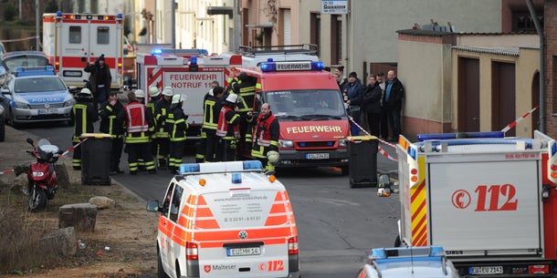Der Baggerfahrer war bei dem Unglück in Euskirchen mit dem Umschichten von Bauschutt auf einem Gewerbegelände beschäftigt, als sich die Explosion ereignete. "Das war eine gewaltige Druckwelle", sagte Polizeisprecher Norbert Hardt. Der schwere Bagger wurde erheblich beschädigt, Autos in der näheren Umgebung demoliert. Scheiben barsten, Dachziegel wurden weggefegt. Noch 400 Meter weit habe es Schäden gegeben, sagte Hardt.