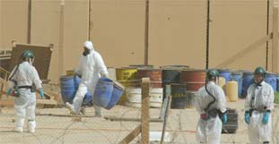 Substanz aus den teils beschädigten Fässern aus der Zeit Saddams in 3.500
