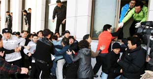 Oppositionsabgeordnete und Wachleute im südkoreanischen Parlament haben sich am Samstag eine wüste Prügelei geliefert. Zu der Auseinandersetzung kam es, als mehr als 150 Wachleute versuchten, den von zahlreichen Volksvertretern und ihren Helfern besetzten Hauptsitzungssaal der Nationalversammlung in Seoul zu räumen. Nach Berichten der nationalen Nachrichtenagentur Yonhap erlitten ein Abgeordneter und etwa 20 Helfer und Wachleute leichte Verletzungen.