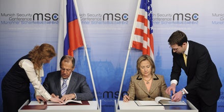 Clinton und Lawrow tauschten in München Ratifizierungsurkunden aus.