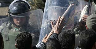 ägyptischen Sicherheitskräfte mit Steinen. Als Reaktion setzten Soldaten