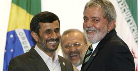 Der iranische Präsident Mahmoud Amadinejad schätzt die Gefahr eines Militärschlags gegen das Atomprogramm seines Landes nach eigenen Worten als gering ein. Die Ära der militärischen Angriffe sei vorbei, "wir befinden uns in einer Epoche des Dialogs", sagte Ahmadinejhad am Montag auf einer Pressekonferenz anlässlich seines Staatsbesuchs in Brasilia. "Waffen und Drohungen gehören der Vergangenheit an", sagte er weiter auf die Frage, ob sich sein Land vor Angriffen Israels oder der USA auf seine Atomanlagen fürchte.
