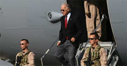 Biden hatte am Dienstag Gespräche mit Vertretern der irakischen Regierung und des US-Militärs geführt. Anschließend sagte er vor Reportern, der Zeitplan für den Abzug der amerikanischen Kampftruppen könne ungeachtet der jüngsten Welle von Attentaten und Terroranschlägen eingehalten werden.