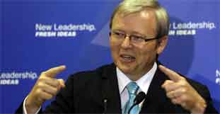 Als ehemaliger Diplomat stellte Rudd die auswärtigen Beziehungen schon in seiner ersten Rede am Sonntag ins Rampenlicht. Mit US-Präsident Bush telefonierte er, mit dem britischen Premierminister Gordon Brown und dem indonesischen Präsidenten Susilo Bambang Yudhoyono. Im September hatte er schon eine Einladung des chinesischen Präsidenten Hu Jintao zu den Olympischen Spielen nach Peking angenommen. Rudd spricht perfekt Mandarin und hatte den Besucher in Sydney damit beeindruckt.