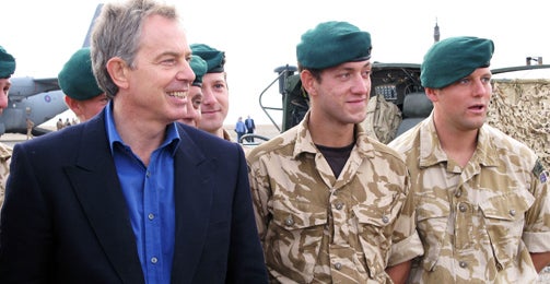 "Hier, in dieser Wüste, wird über die Zukunft der weltweiten Sicherheit im frühen 21. Jahrhundert entschieden werden", sagte Blair am Montag bei einem überraschenden Besuch in Afghanistan. Nach dem Treffen mit britischen Soldaten in der südlichen Unruheprovinz Helmand flog er nach Kabul, um dort mit Präsident Hamid Karzai zu sprechen. In Afghanistan sind etwa 5.000 britische Soldaten stationiert. Der Einsatz ist derzeit mit mehr Todesopfern verbunden als der Irak-Krieg.