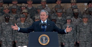 US-Präsident George W. Bush hat nach eigenen Worten noch keine Entscheidung über einen weiteren Abzug amerikanischer Soldaten aus dem Irak getroffen. "Wir müssen alles tun um sicherzustellen, dass 2008 noch größeren Erfolg bringt", sagte Bush bei einem Truppenbesuch im Camp Arifjan am Samstag in Kuwait. Die Truppenstärke hänge von der Lage im Land ab, erklärte der Präsident. Dabei lasse er dem US-Kommandanten im Irak, General David Petraeus, völlig freie Hand.