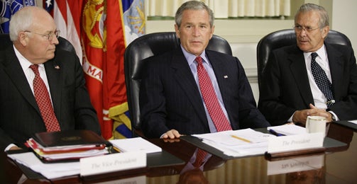 Er gehe davon aus, dass Rumsfeld bis zum Ende seiner Präsidentschaft weitermache, sagte US-Präsident George W. Bush am Mittwoch. Auch seinen Stellvertreter Dick Cheney lobte Bush: "Beide Männer machen einen fantastischen Job, und ich unterstütze sie entschieden."