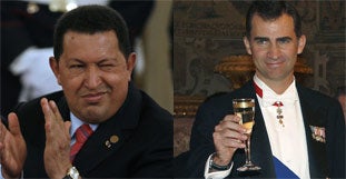Erstmals seit dem Eklat beim Iberoamerikanischen Gipfel im Vormonat ist ein Vertreter des spanischen Königshauses mit Venezuelas Präsident Hugo Chavez zusammengetroffen. Wie die spanische Zeitung "El Pais" am Montag in ihrer Internetausgabe schrieb, begrüßten sich der spanische Kronprinz Felipe und Chavez "protokollarisch" anlässlich eines Galadiners am Abend vor der Amtseinführung der neuen argentinischen Präsidentin Cristina Fernandez de Kirchner in Buenos Aires.