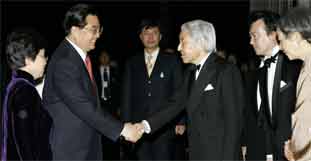 China und Japan wollen ein neues Kapitel in ihren Beziehungen aufschlagen und unter anderem jährlich Gipfeltreffen der führenden Politiker abhalten. Streitigkeiten um Gasreserven unter dem Meer sollen friedlich beigelegt werden. Das vereinbarten am Mittwoch der chinesische Staats- und Parteichef Hu Jintao und der japanische Ministerpräsident Yasuo Fukuda. Es ist der erste Besuch eines chinesischen Staatsoberhauptes in Japan seit zehn Jahren. Hu und seine Frau Liu Yongqing wurden mit allen Ehren von Kaiser Akihito und Kaiserin Michiko empfangen.