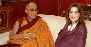 Der Dalai Lama in safranfarbenem Gewand legte Carla Bruni einen weißen seidenen Begrüßungsschal (Khata) um den Hals. Die Szene wurde von mehreren Fernsehkameras festgehalten. Die Sängerin trug ein blaues Kleid und Sandalen. Insgesamt 2000 Menschen waren zur Weihe des Tempels 70 Kilometer nordwestlich von Montpellier gekommen. Journalisten erkannten neben anderen die Schauspielerin Juliette Binoche, das einstige Topmodel Inès de la Fressange und die Staatssekretärin für Menschenrechte, Rama Yade.