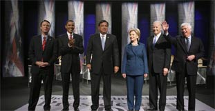 BARACK OBAMA präsentiert sich als Garant für einen politischen Neubeginn. Der 46-jährige Senator aus Illinois ist die große Nachwuchshoffnung seiner Demokratischen Partei. Bei seinen Auftritten wird der talentierte Redner umjubelt wie ein Rockstar. Obama wäre der erste farbige Präsident in der US-Geschichte. Er hebt hervor, dass er anders als Clinton von Anfang an gegen den Krieg im Irak war. Kritiker halten Obama einen Mangel an Erfahrung vor. Ein Wahlkampf-Coup gelang ihm zuletzt durch die Unterstützung der prominenten Talk-Showmasterin Oprah Winfrey. Im Rennen um die Kandidatur der Demokraten hat er aufgeholt und liegt derzeit mit rund 25 Prozent hinter Clinton auf Platz zwei.